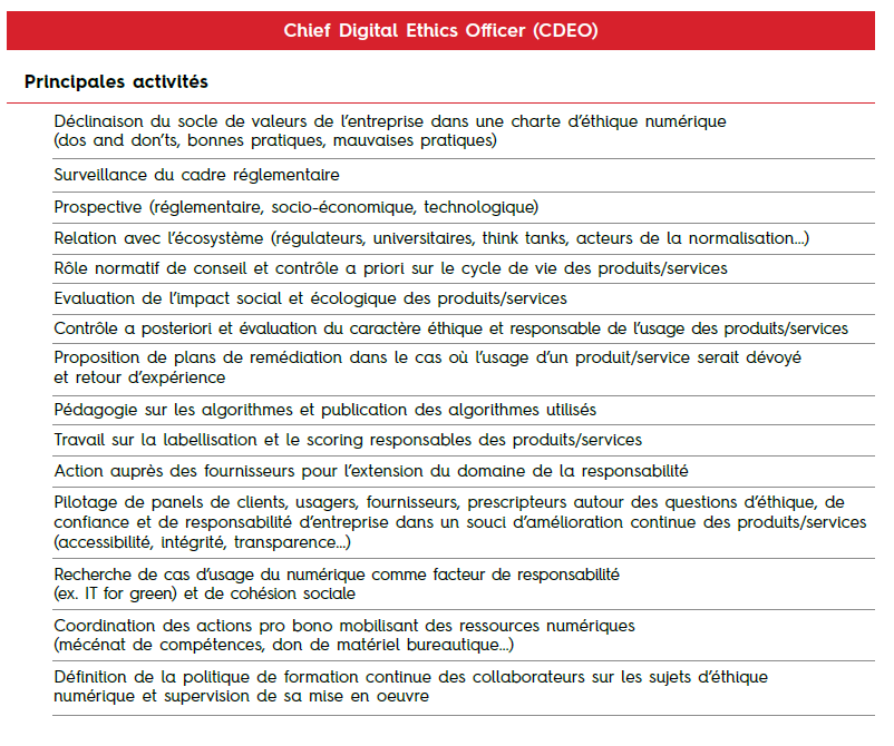 2. Méthode 2 : Identifier les moyens à mettre en œuvre en définissant une mission de « Chief Digital Ethics Officer » (CDEO)